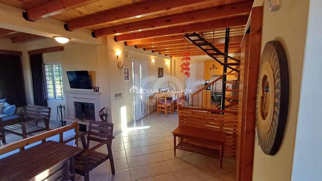 Fully furnished and electrically equipped detached house-maisonette on the ground floor, 2 levels 75 sq.m. on a plot of 2 acres. It has a single living room-kitchen area, 2 bedrooms, 1 bathroom with shower, radiator with wood, air conditioning, solar 2-fold energy, autonomous PPC clock, 2 large terraces, grill, oven, orchard, fruit trees. Only 1 dog accepted. PEA D. Rent price 650 euros.
