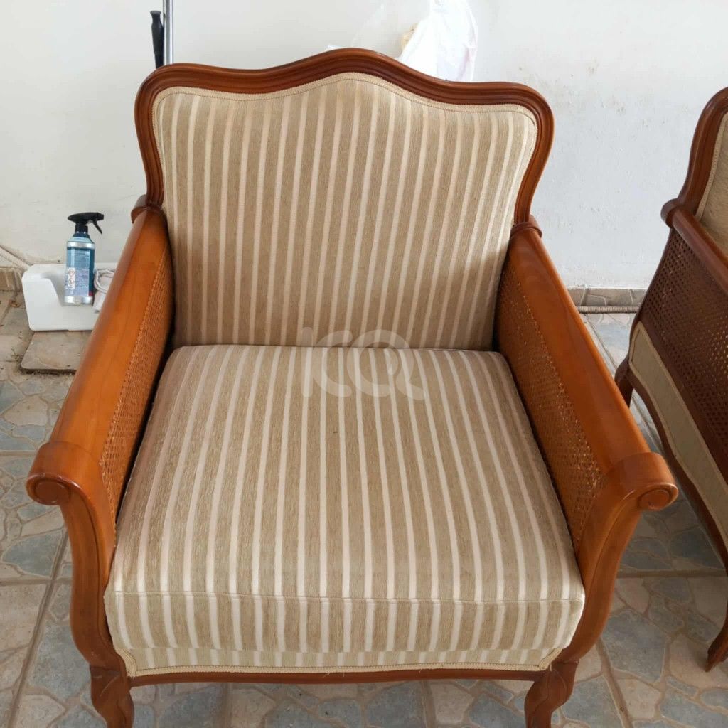 • 2 πολυθρόνες μπεζ σοκολά ριγέ 72εκ μήκος x 70εκ πλάτος x 90εκ. ύψος, τιμή 100€ έκαστη.