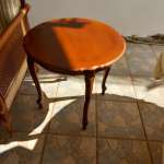 • Στρογγυλό τραπέζι κερασιάς με σκαλιστά πόδια- διάμετρος 60εκ x 56εκ ύψος, τιμή 100€