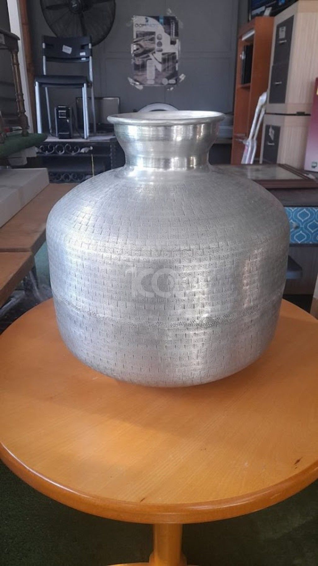 Μεταχειρισμένο, Zaros διακοσμητικό βάζο, αλουμινίου ασημί. Διάσταση: 35x35x40εκ. Σε καλή κατάσταση.