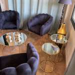 4 Πολυθρόνες -3 τραπεζάκια -1 Βάζο κεραμικό -επιδαπέδιο φωτιστικό -μαξιλάρια μαύρα-πίνακες κ.α. Όλα μαζί 900€