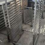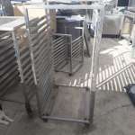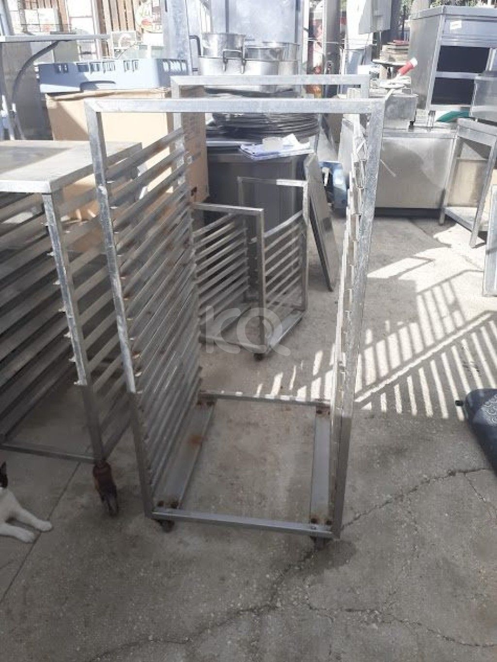 Μεταχειρισμένο καρότσι μεταφοράς για λαμαρίνες, 18 θέσεων. Διαστάσεις καροτσιού: 59x65x126εκ. Διαστάσεις λαμαρίνας: 33x54εκ. Σε καλή κατάσταση.