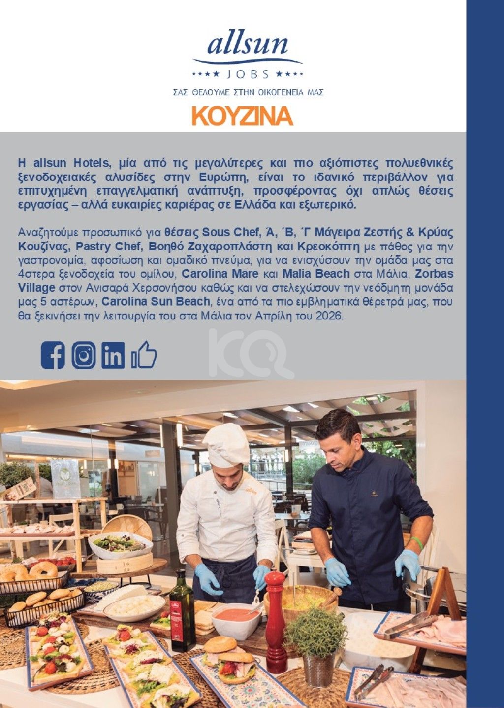 Αναζητούμε προσωπικό για θέση Μάγειρες Ζεστής κουζίνας με πάθος για την γαστρονομία, αφοσίωση και ομαδικό πνεύμα, για να ενισχύσουν την ομάδα μας