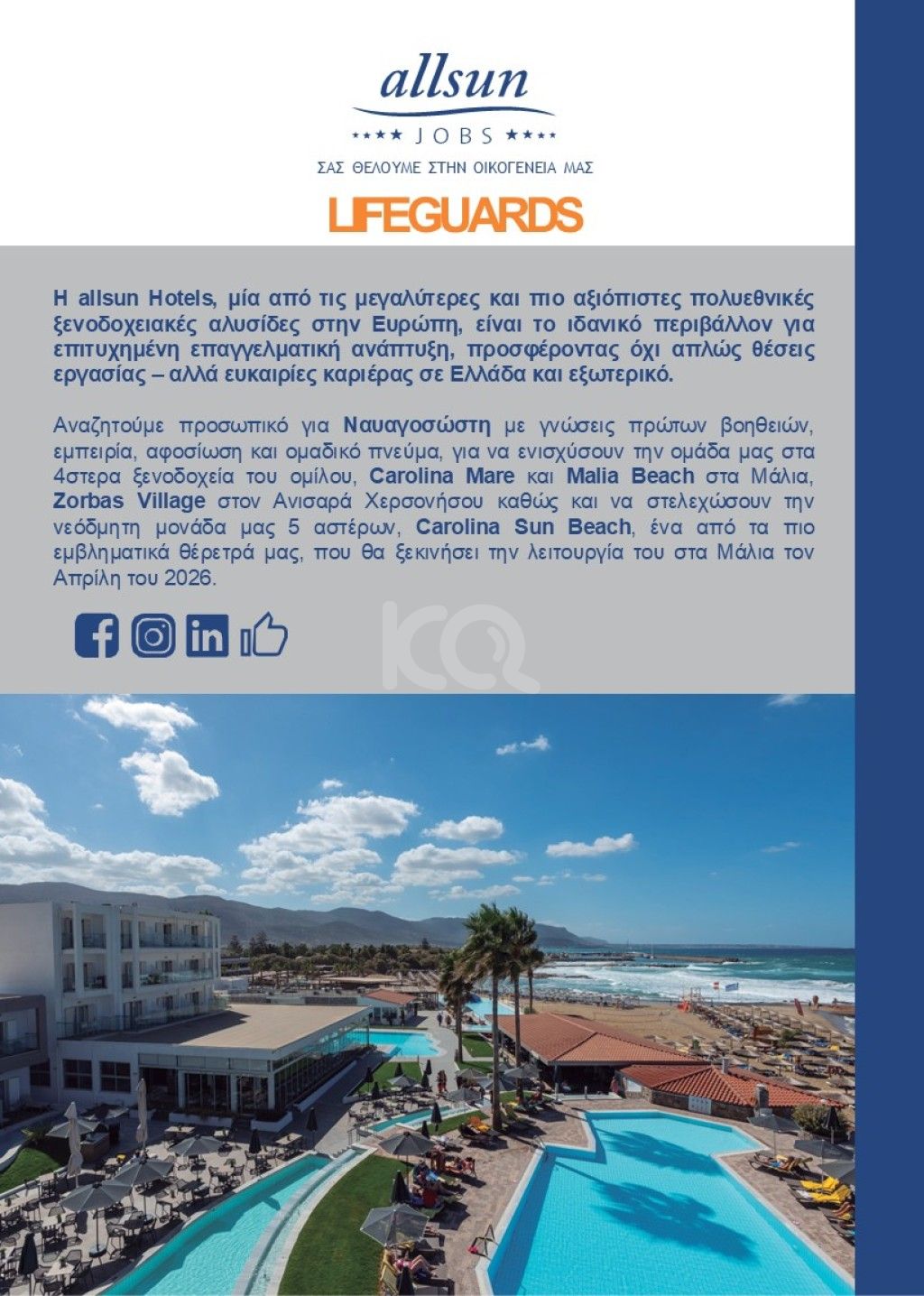 Αναζητούμε Ναυαγοσώστη με γνώσεις πρώτων βοηθειών, εμπειρία, αφοσίωση και ομαδικό πνεύμα.