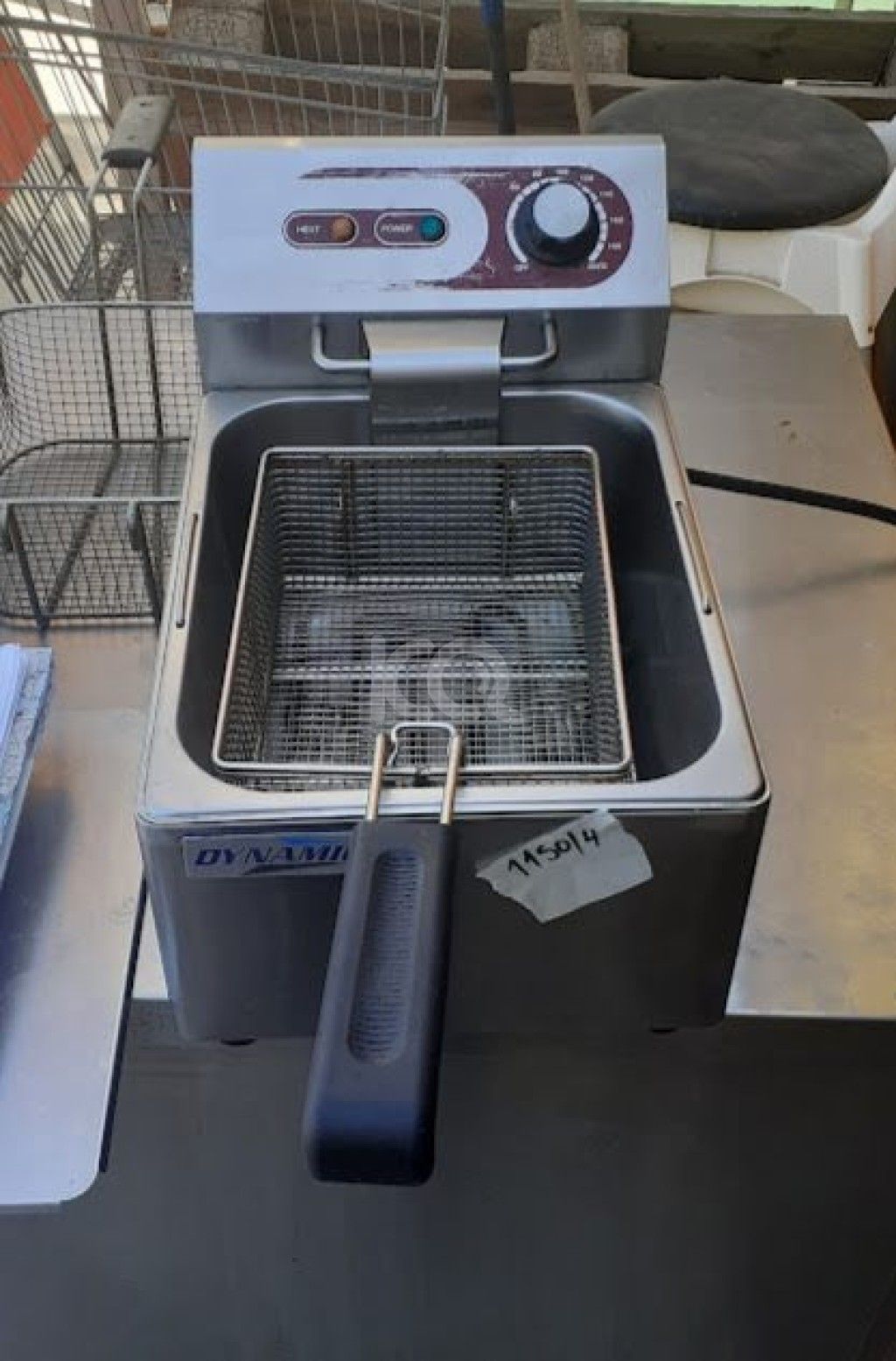 Μεταχειρισμένη, ανοξείδωτη φριτέζα, DYNAMIC, 6 λίτρων, με ένα καλάθι και αφαιρούμενη δεξαμενή λαδιού. Διαστάσεις: 27x42x29. Σε καλή κατάσταση.