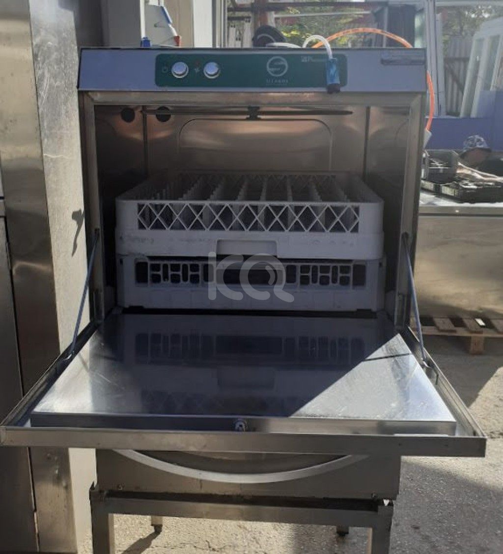 Μεταχειρισμένο, ανοξείδωτο πλυντήριο πιάτων SILANOS E50 ECO PD/PB-400/3/50 . Διαστάσεις: 56x61x82 εκ. Σε καλή κατάσταση.
