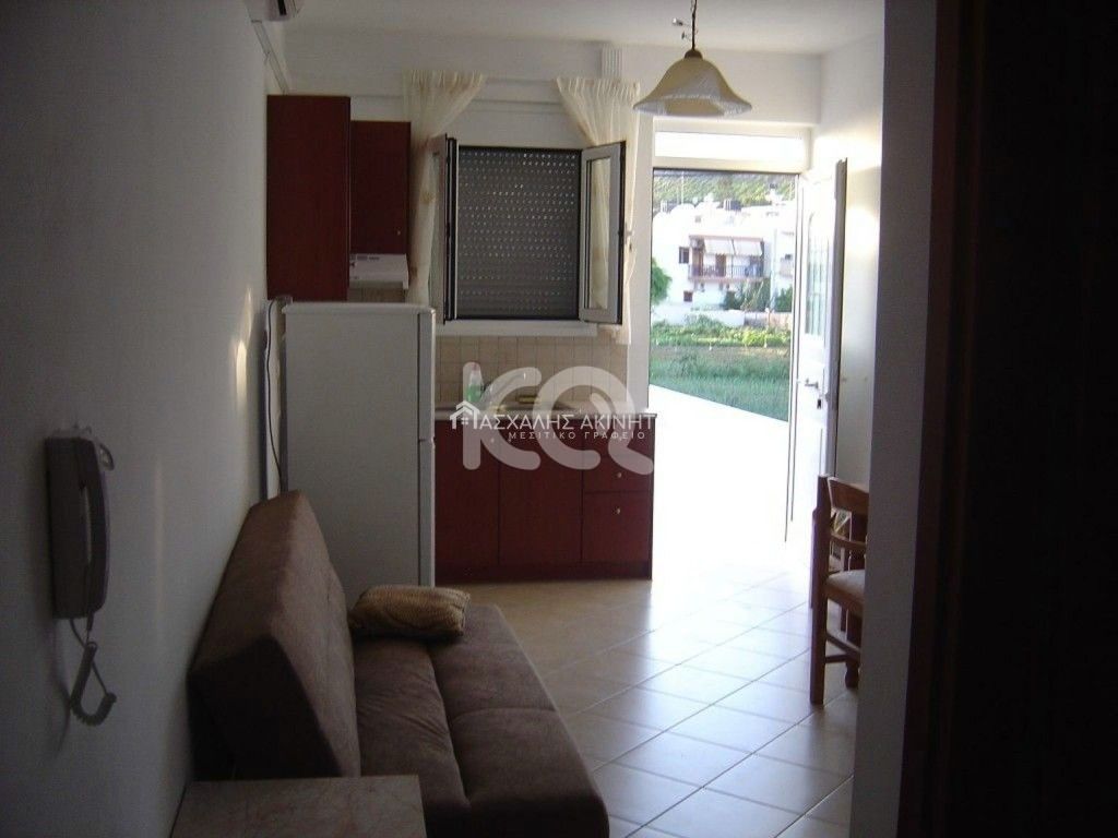 Furnished and electrically equipped 2-room ground floor studio 42 sq.m. It has a single living room-kitchen area, 1 bedroom, 1 bathroom with shower, central heating, air conditioning, solar, PPC and water meter, internet, shared yard, small pet accepted. PEA E. Rent price 370 euros.
