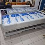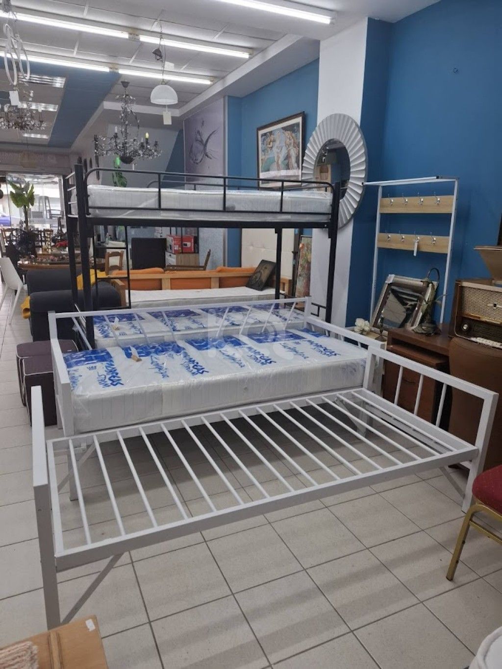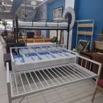 Καινούργιο, μεταλλικό, διπλό κρεβάτι καναπές, λευκό χρώμα. Διαστάσεις κάθε κρεβατιού: 90x190 εκ. Στην τιμή δεν συμπεριλαμβάνονται τα στρώματα