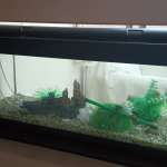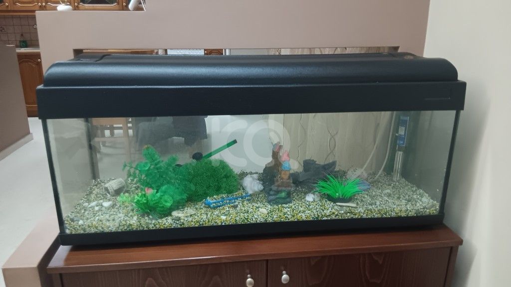 ολοκαίνουριο 100 λίτρων με το φίλτρο του, φωτισμό, θερμόμετρο και διάφορα διακοσμητικά, τιμή 150 ευρώ.