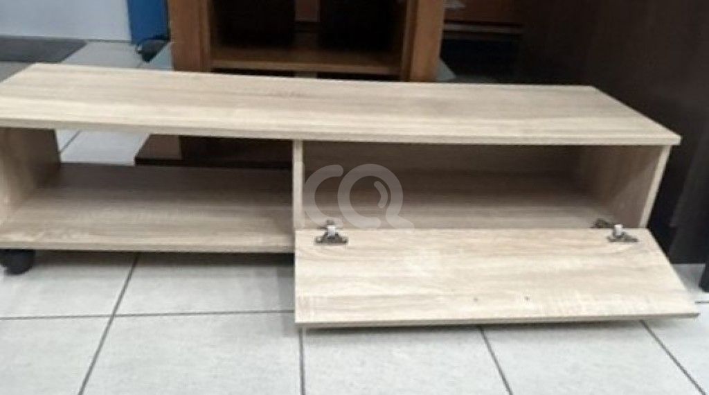 Μεταχειρισμένο έπιπλο τηλεόρασης, με ένα ανοιγόμενο ντουλάπι και ροδάκια για εύκολη μετακίνηση. Διαστάσεις: 130x36x33 εκ. Σε καλή κατάσταση.