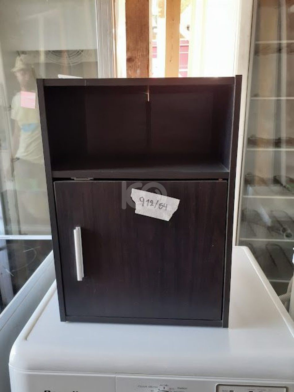 Μεταχειρισμένο κομοδίνο σε σκούρο καφέ χρώμα με ένα ντουλάπι και ένα ράφι. Διαστάσεις: 36x28x50 εκ. Σε καλή κατάσταση