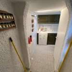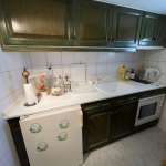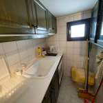 Η κουζίνα είναι λειτουργική, με ξύλινες ντουλάπια και πλήρως εξοπλισμένη με ηλεκτρικές συσκευές, ενώ το μπάνιο είναι διακριτικά ενταγμένο, προσφέροντας άνεση.