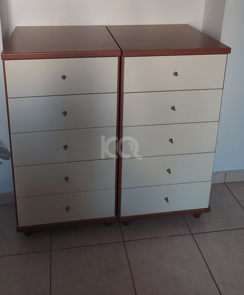 διπλό κρεβάτι, στρώμα, 2 κομοδίνα, συρταριέρα, όλα σε καλή κατάσταση.