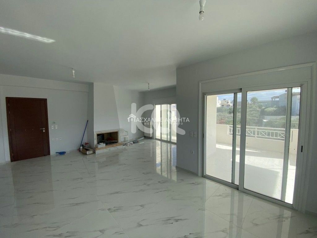 Electrically equipped (without refrigerator) 1st rental, newly built 4-room apartment 1st floor, 132 sq.m. It has a single living room-kitchen area, 3 bedrooms, 1 bathroom with bathtub and 1 wc, autonomous heating (oil) fireplace, solar, PPC meter, loft, terrace, balcony, storage room. PEA B. Rent price 930 euros.