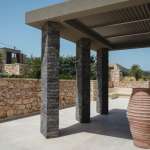 Η κατοικία περιβάλλεται από μεγάλους κήπους, μεγάλες στεγασμένες βεράντες με εξαιρετική θέα στη θάλασσα και άμεση πρόσβαση στην θερμαινόμενη πισίνα με θαλασσινό νερό. Μπαίνοντας σε αυτό το πλήρως περιφραγμένο ακίνητο θα δείτε έναν στεγασμένο χώρο στάθμευσης με 2 θέσεις για αυτοκίνητα και έναν μικρό όμορφο κήπο ιδανικό για να καλλιεργήσετε τοπικά λαχανικά και να απολαύσετε τη γεύση των κρητικών προϊόντων.