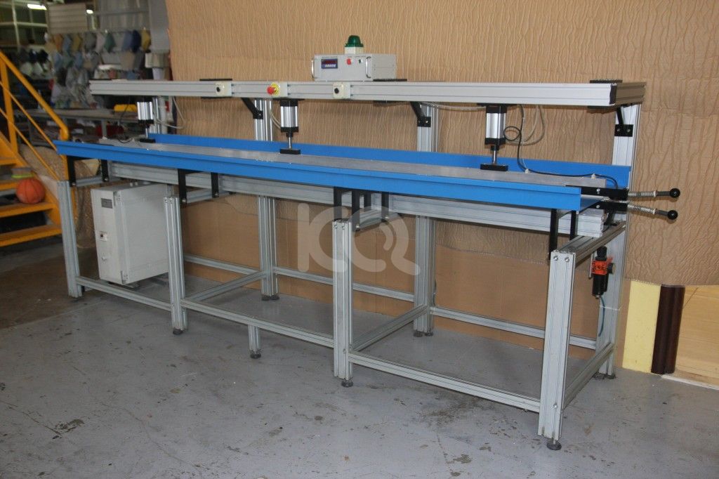 Ηλεκτρονικό χειριστήριο θερμοκρασίας & χρόνου, Μεγάλη ευθύγραμμη επιφάνεια εργασίας, Βαρέως τύπου αλουμινένιο σασί, Emergency stop & φωτεινές ενδείξεις λειτουργίας, Σφιγκτήρες για σταθεροποίηση υφάσματος.