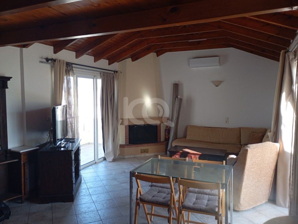 Ανακαινισμένη, μονόχωρη, πλήρως επιπλωμένη και ηλεκτρικά εξοπλισμένη γκαρσονιέρα 3ου ορόφου (χωρίς ασανσέρ), 40 τ.μ. Αποτελείται από ενιαίο χώρο υπνοδωματίου-σαλονιού, κουζίνα, μπάνιο με ντουζιέρα. Διαθέτει ηλιακό θερμοσίφωνα, a/c, τζάκι, βεράντα με πέργκολα και θέα, δύο μπαλκόνια, TV, πλυντήριο ρούχων. Χωρίς κοινόχρηστα. Το νερό συμπεριλαμβάνεται στην τιμή. Δεκτά τα κατοικίδια. ΠΕΑ Ε.