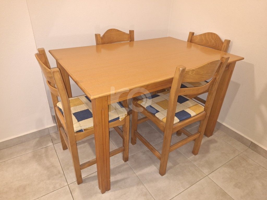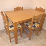 Πωλείται λόγω μετακόμισης ολόκληρο το σετ: Τραπέζι σε καλή κατάσταση με διαστάσεις Μ122×Π82×Υ77 μαζί με 4 καρέκλες.
