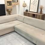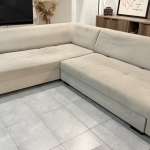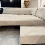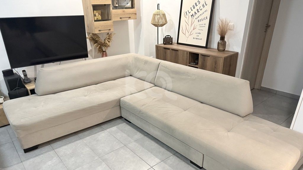 Πωλείται γωνιακός καναπές σε άριστη κατάσταση, σε μπεζ/εκρού απόχρωση. Είναι ιδιαίτερα άνετος, με φαρδύ κάθισμα και μοντέρνο, minimal σχεδιασμό που ταιριάζει σε κάθε σαλόνι.
