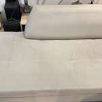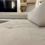 Το ύφασμα είναι μαλακό, ανθεκτικό και άριστα διατηρημένο, χωρίς λεκέδες ή σκισίματα. Ο καναπές αποτελείται από δύο κομμάτια που ενώνονται και ασφαλίζουν μεταξύ τους, προσφέροντας έξτρα σταθερότητα.