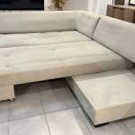 Η δεξιά πλευρά (όπως φαίνεται στις φωτογραφίες) περιστρέφεται και μπορεί να γυρίσει προς τα αριστερά, μετατρέποντας τον καναπέ σε ευρύχωρο κρεβάτι — ιδανικό για φιλοξενούμενους ή καθημερινή χρήση.
