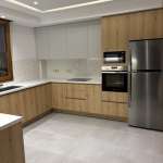 Η κουζίνα περιλαμβάνει όλες τις ηλεκτρικές συσκευές εντοιχισμένες και αρκετούς αποθηκευτικούς χώρους.