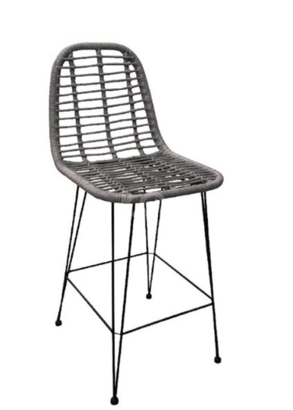 2 Σκαμπό μπαρ γκρι wicker, με διαστάσεις: 45x55x75/109cm