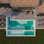 Η δεύτερη βίλα 100τ.μ. έχει 2 υπνοδωμάτια, 2 μπάνια, σαλόνι-κουζίνα με άνετο εξωτερικό χώρο με πισίνα.