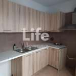 Το διαμέρισμα διαθέτει άνετο σαλόνι με όμορφο μωσαϊκό δάπεδο, εντοιχισμένη βιβλιοθήκη/σύνθεση και έξοδο σε μπαλκόνι, προσφέροντας φυσικό φως και αίσθηση άνεσης. Η κουζίνα είναι ξεχωριστή, λειτουργική και πλήρως ανακαινισμένη, με σύγχρονα ντουλάπια και άνετους αποθηκευτικούς χώρους.