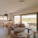 Ο χώρος διαβίωσης διαθέτει ανοιχτή σχεδίαση με κομψό σαλόνι, τραπεζαρία και πλήρως εξοπλισμένη κουζίνα με σύγχρονες συσκευές. Ο συνδυασμός φυσικών υλικών, απαλού φωτισμού και εκλεπτυσμένης διακόσμησης δημιουργεί μια αίσθηση ηρεμίας και αποκλειστικότητας.