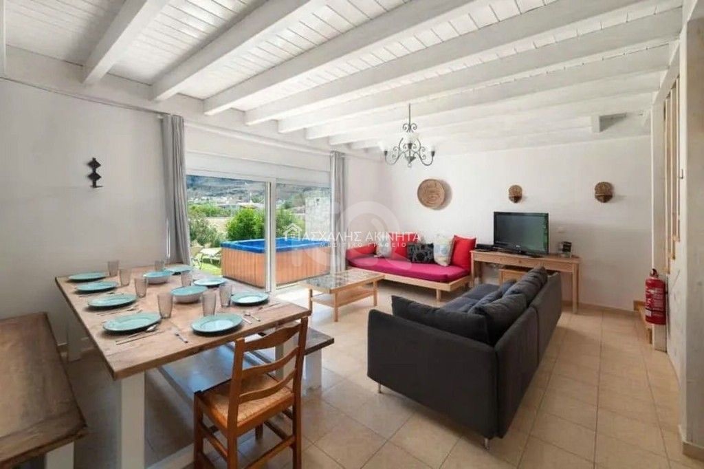 Επιπλωμένη και ηλεκτρικά εξοπλισμένη βίλλα-μεζονέτα ισογείου, 2 επιπέδων σε οικόπεδο 500 τ.μ. Διαθέτει 2 σαλόνια, κουζίνα, 3 υ/δ, 1 λουτρό και 1 wc, κλιματισμό, ηλιακό, αυτόνομο ρολόι ΔΕΗ, αποθήκη, αυλή με κήπο, θέα βουνό, πισίνα, τζακούζι, parking. Ιδανική και για επένδυση. ΠΕΑ Α. Τιμή πώλησης 340.000 ευρώ.
