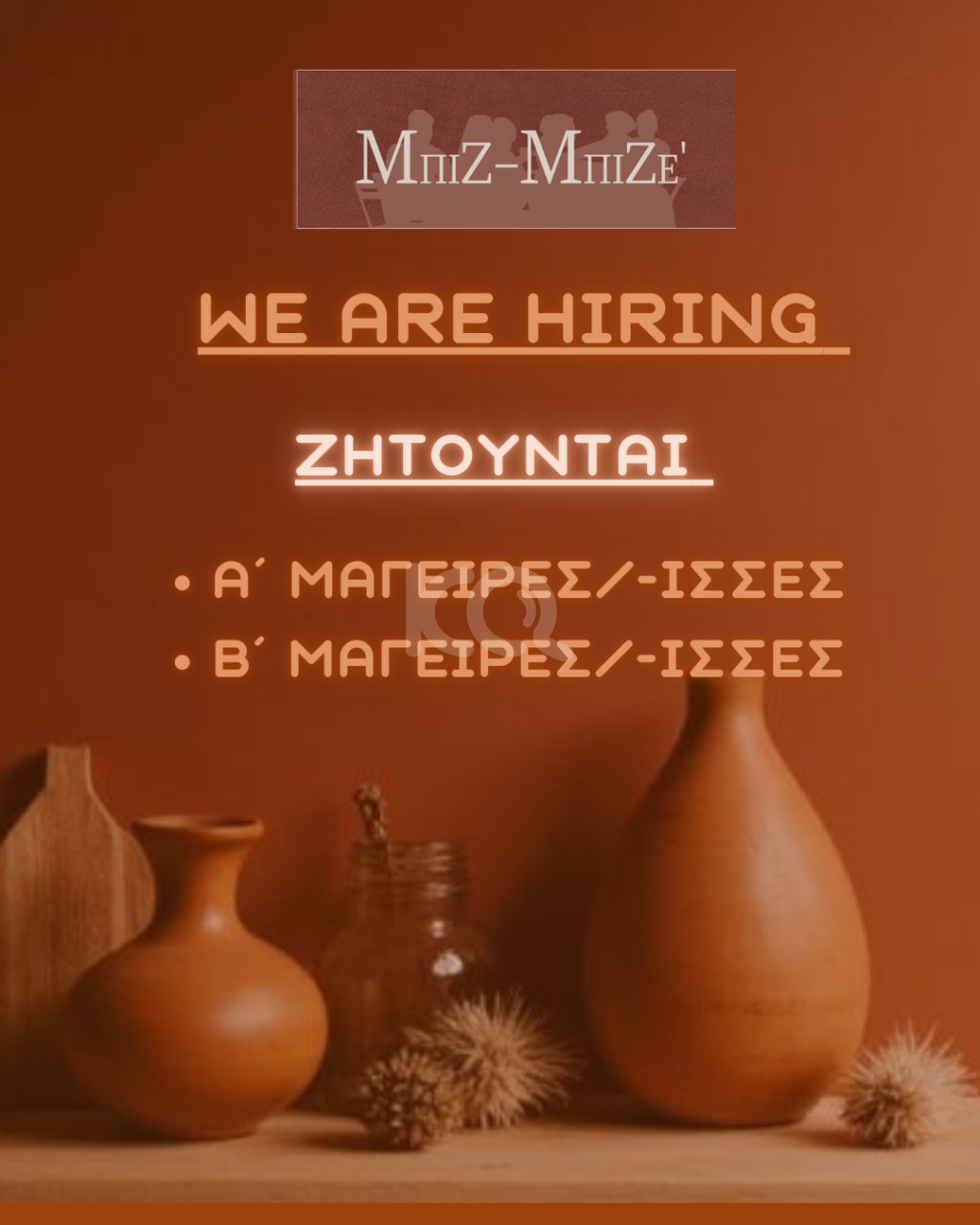 Ζητούνται μάγειρες / μαγείρισσες & άτομα στην θέση της λάντζας για ταβερνάκι που ανοίγει σύντομα στις Αρχάνες.