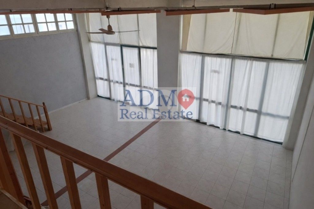 Αποτελείται από ενιαίο χώρο (100τμ) και πατάρι (50τμ), 1w/c, με εξωτερική πρασσά.