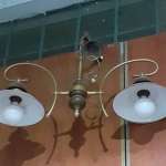 Μεταχειρισμένο κρεμαστό φωτιστικό με μεταλλικό σκελετό σε μπρονζέ χρώμα και δύο λάμπες. Σε καλή κατάσταση. Η τιμή δεν περιλαμβάνει ΦΠΑ 24% και μεταφορικά