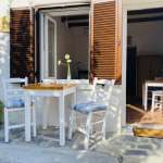 Εξωτερικά, η μικρή αυλή, στρωμένη με πέτρα, αποτελεί ένα ήσυχο και γοητευτικό σημείο για να απολαύσει κανείς τον καφέ του και την ηρεμία της γειτονιάς. Στο δώμα βρίσκεται πέργκολα, ιδανική για ξαπλώστρες ή ένα τραπεζάκι, όπου ο επισκέπτης μπορεί να χαρεί τη μαγευτική θέα προς το βουνό και τη θάλασσα.