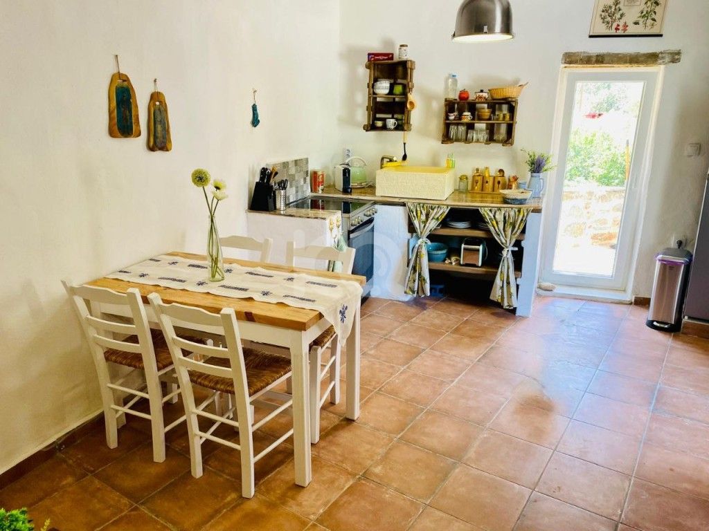 Λίγο παρακάτω, αλλά στον ίδιο δρόμο, βρίσκεται η δεύτερη μικρότερη μονοκατοικία, επίσης ανακαινισμένη. Αποτελείται από μεγάλο ενιαίο χώρο με παραδοσιακή κουζίνα και μπάνιο, ενώ από την εξωτερική σκάλα οδηγούμαστε και εδώ σε δεύτερη περγκόλα με εξαιρετική θέα στο φυσικό τοπίο.