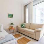 Furnished (with large wardrobes) and electrically equipped (with washing machine and dishwasher) 3-room apartment on the 1st floor of 70 sqm. It has a single living room-kitchen area, 2 bedrooms, 1 bathroom with bathtub, air conditioning in each room, solar, marble, perimeter glazing, large terrace. No pets. It is given only for short-term rental. Ideal for cohabitation. Rent price 1280 euros.