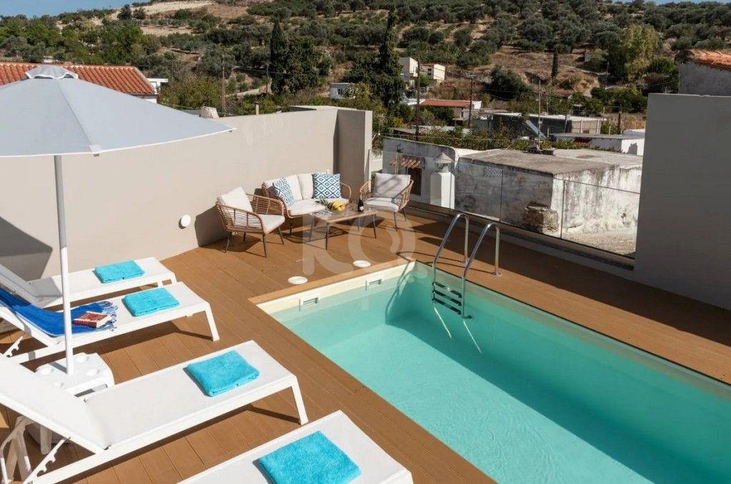 Διαθέτει αυτόνομη θέρμανση με ρεύμα και κλιματισμό. Έχει κουφώματα αλουμινίου και δάπεδα από ξύλο. Η ενεργειακή κλάση του ακινήτου είναι Β. Στα επιπλέον χαρακτηριστικά του ακινήτου προστίθενται η εσωτερική σκάλα, οι ηλεκτρικές συσκευές, οι ντουλάπες, το τζάκι, ο ηλιακός θερμοσίφωνας και η πισίνα. Το ακίνητο έχει απεριόριστη θέα.Το εμβαδόν του οικοπέδου ανέρχεται στα 250τ.μ.