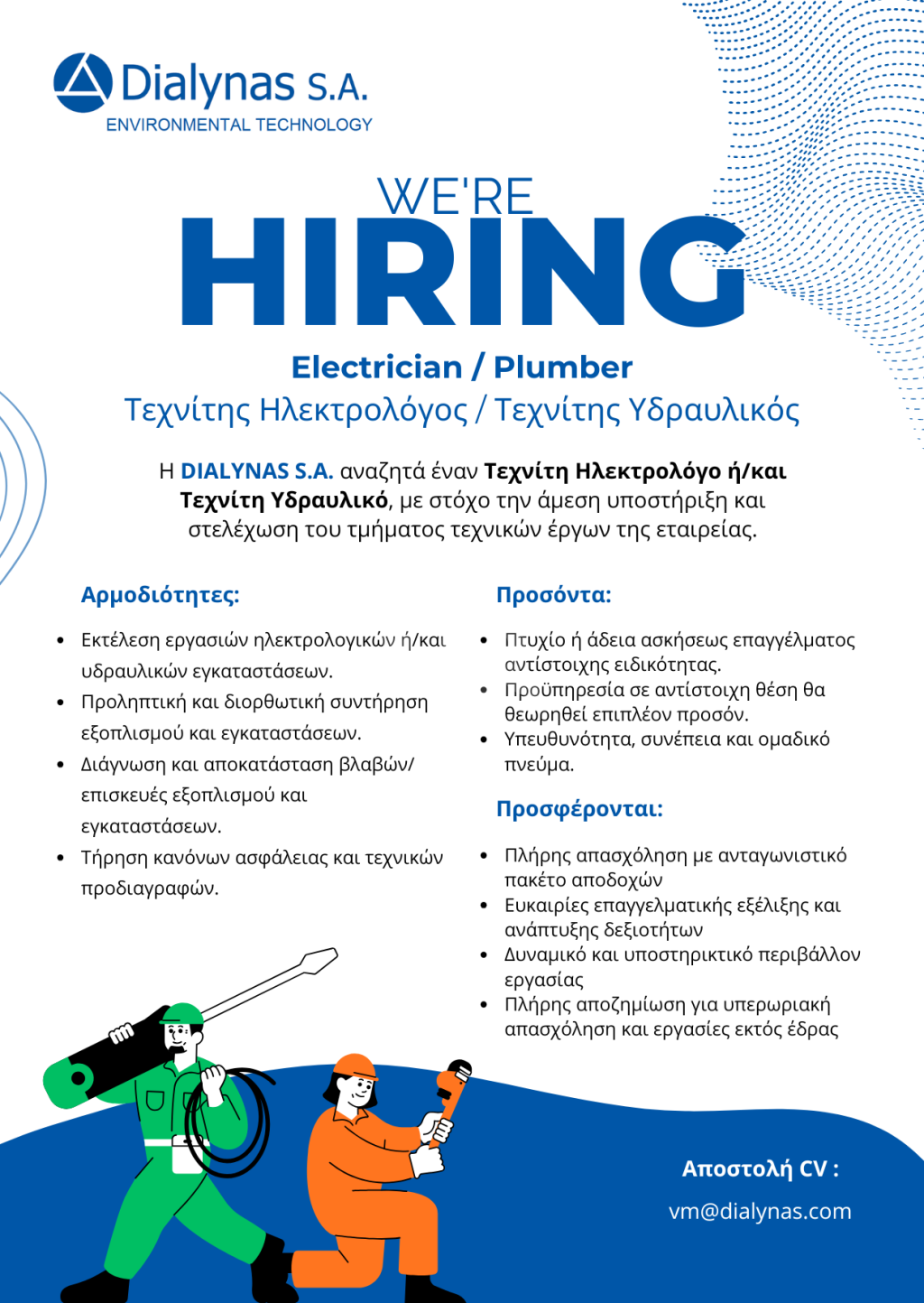 ΤΕΧΝΙΤΗΣ ΗΛΕΚΤΡΟΛΟΓΟΣ/ ΥΔΡΑΥΛΙΚΟΣ