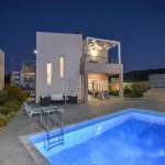 πωλείται σύγχρονη βίλα 120 τμ σε οικόπεδο 300 τμ με ιδιωτική πισίνα και πανέμορφη θέα στη θάλασσα και το βουνό. Συγκεκριμένα, βρίσκεται εντός οργανωμένου συγκροτήματος βιλών, είναι πλήρως επιπλωμένη και ηλεκτρικά εξοπλισμένη και αναπτύσσεται σε δύο επίπεδα. Προσφέρει ενιαίο χώρο με σαλόνι, τραπεζαρία και κουζίνα, δύο υπνοδωμάτια, τρία μπάνια και βεράντες με ανεμπόδιστη θέα. Επιπλέον, είναι εξοπλισμένη με αυτόνομη θέρμανση με κλιματιστικά, ηλιακό θερμοσίφωνα, πόρτα ασφαλείας συμπαγούς κατασκευής, σύγχρονα κουφώματα, διπλά τζάμια και πλήρη καλωδίωση για internet και τηλεόραση. Ο εξωτερικός χώρος είναι πολύ όμορφα διαμορφωμένος και γενικά το συγκρότημα παρέχει κοινόχρηστη πισίνα, πλήρως εξοπλισμένο γυμναστήριο με χώρο yoga, γήπεδο πάντελ και μπάσκετ, παιδική χαρά, διαμορφωμένους κήπους, χώρους στάθμευσης, ελεγχόμενη πρόσβαση, εικοσιτετράωρη φύλαξη και σύστημα καμερών ασφαλείας.