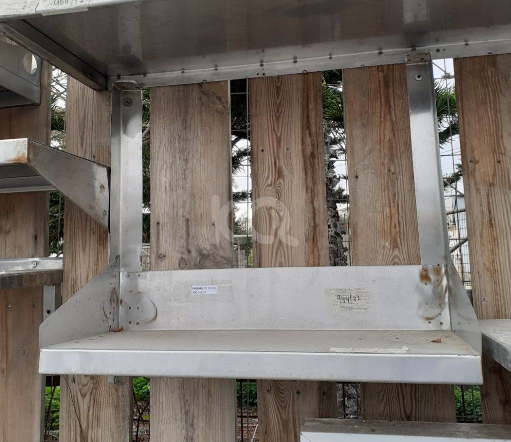 Μεταχειρισμένο, επιτοίχιο ράφι, ανοξείδωτο. Κατάλληλο για χώρους εστίασης. Σε καλή κατάσταση. Διαστάσεις: 70x30 εκ. Τιμή: 30€/τμχ. Η τιμή δεν περιλαμβάνει φπα 24% και μεταφορικά