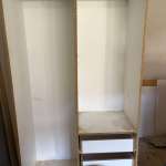 Κρεβάτια ξύλινα, τραπεζάκι ξύλινο, τραπέζι κουζίνας με 3 καρέκλες, ντουλάπα.
