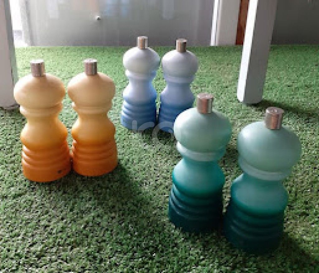 Μεταχειρισμένο σετ αλατοπίπερου. Διατίθενται σε τρία χρώματα: κίτρινο/πορτοκαλί, γαλάζιο/μπλε και πράσινο. Σε καλή κατάσταση. Τιμή: 2€/τμχ. Η τιμή δεν περιλαμβάνει ΦΠΑ 24% και μεταφορικά