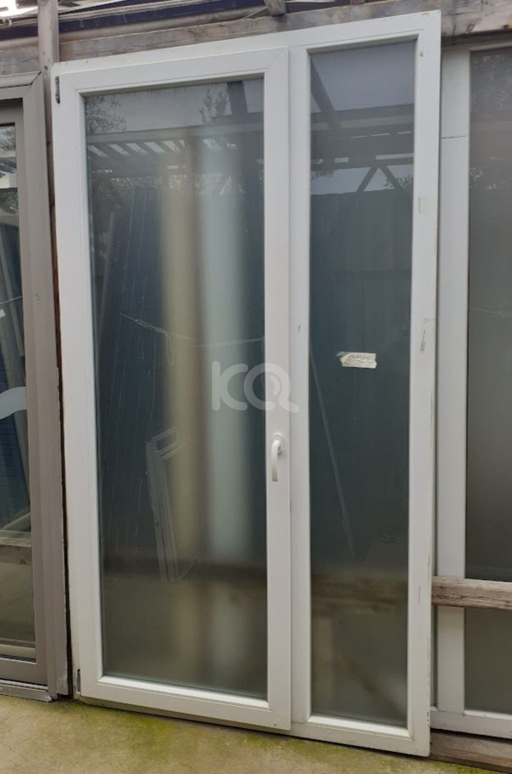Μεταχειρισμένη, μονόφυλλη μπαλκονόπορτα PVC με σταθερό πλαϊνό τζάμι. Με διπλά τζάμια. Ενδεικτικές Διαστάσεις: 118x202 εκ. Τιμή: 250€/τμχ.