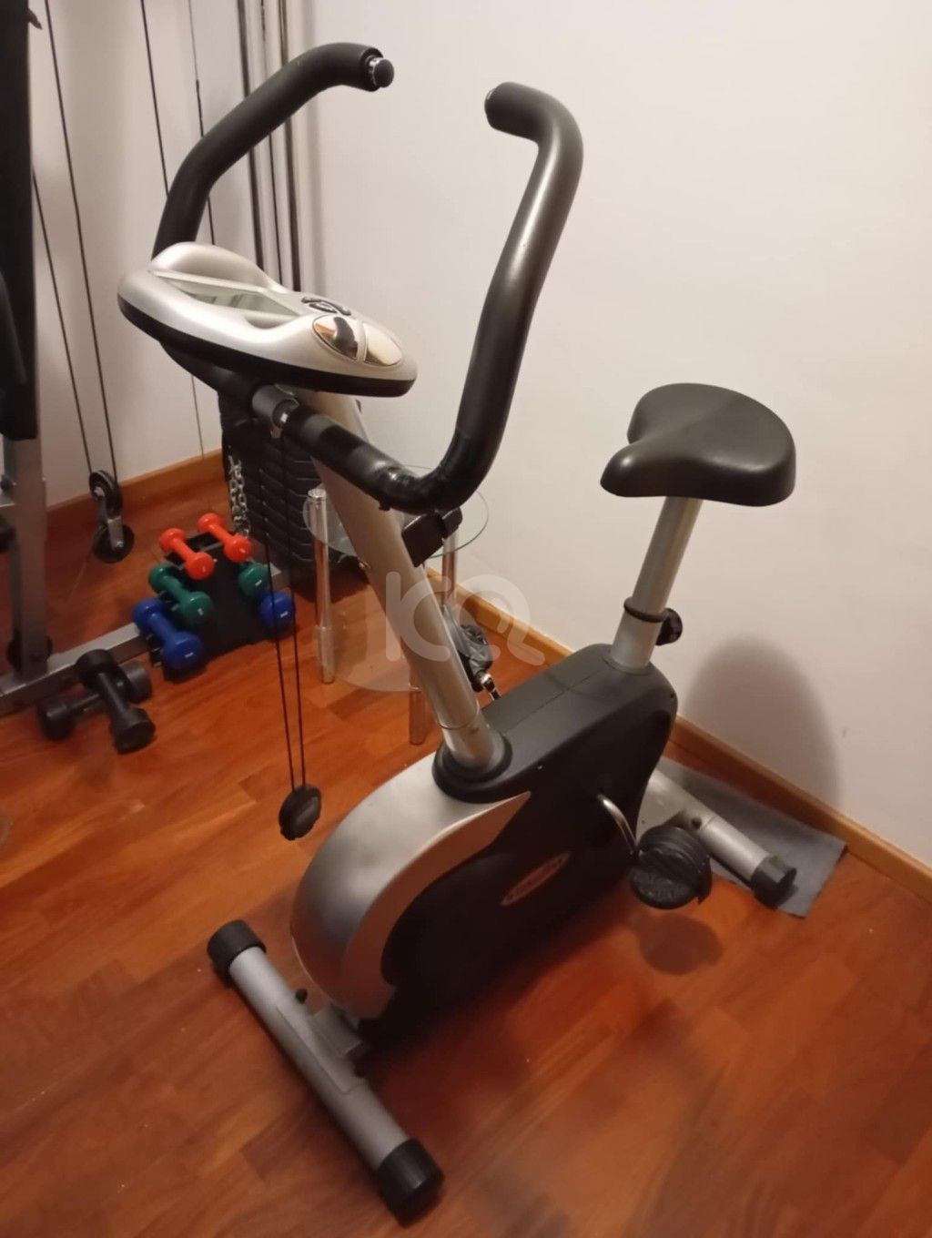 Στατικό ποδήλατο γυμναστικής με διαβαθμίσεις ταχυτήτων και αντιστάσεων (ανηφόρα). Μέτρηση θερμίδων και απόστασης. Μαζί δώρο ποδήλατο γυναικείο 18 ταχυτήτων. Διαθέτει βοηθητικό καλαθάκι στο τιμόνι, ανακλαστικά φώτα και φώτα πορείας μπρος πίσω, ελάχιστα χρησιμοποιημένο.