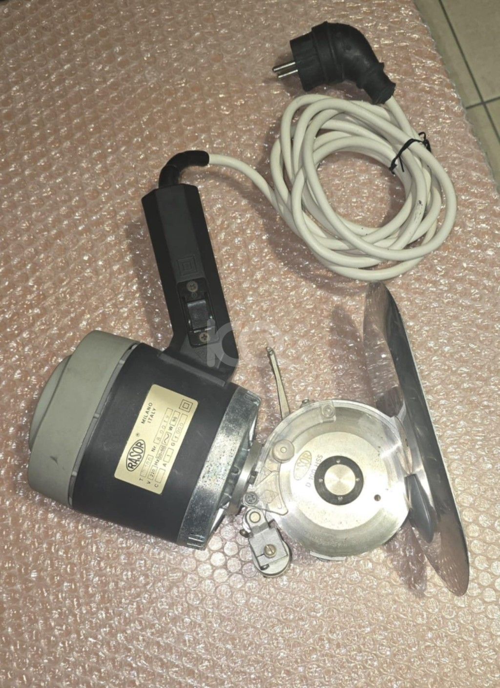 Ηλεκτρικό φορητό ψαλίδι κοπής υφασμάτων Rasor, σε άριστη κατάσταση, κατάλληλο για βιοτεχνία ρούχων κτλ