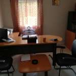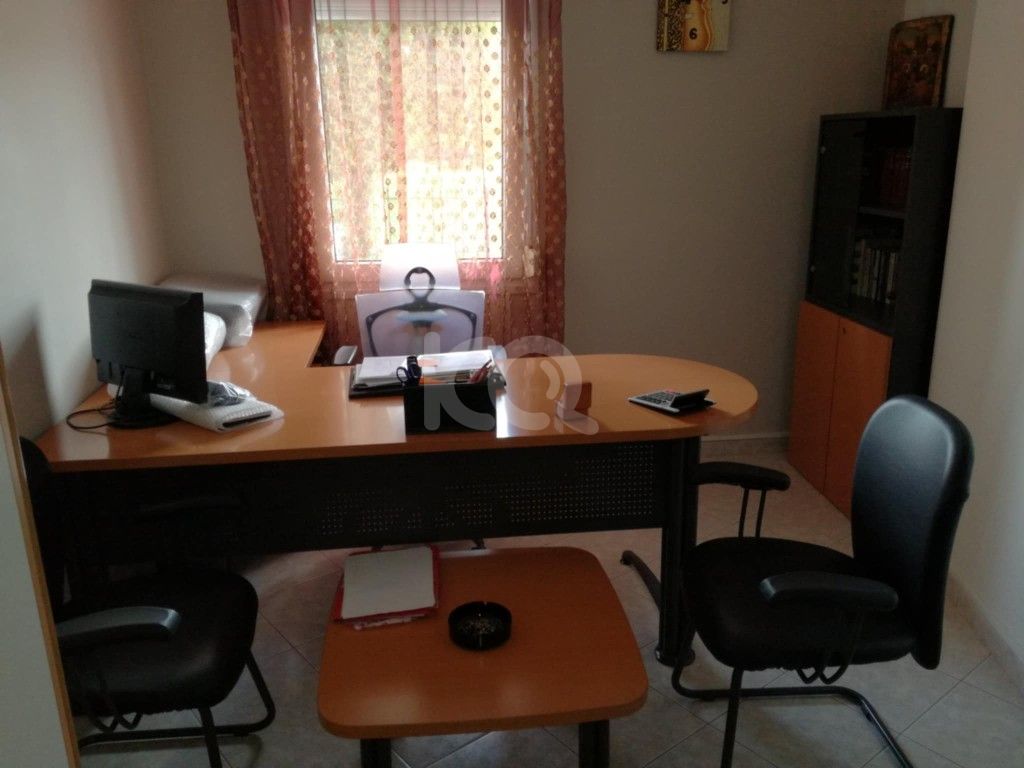 Γραφείο γωνία, συρταριέρα, 5 ερμάρια, καρέκλα γραφείου δέρμα, τραπεζάκι, 2 καρέκλες επισκεπτών δερμάτινες, διθέσιος δερμάτινος καναπές. Όλα στιβαρή κατασκευή. Άριστη κατάσταση