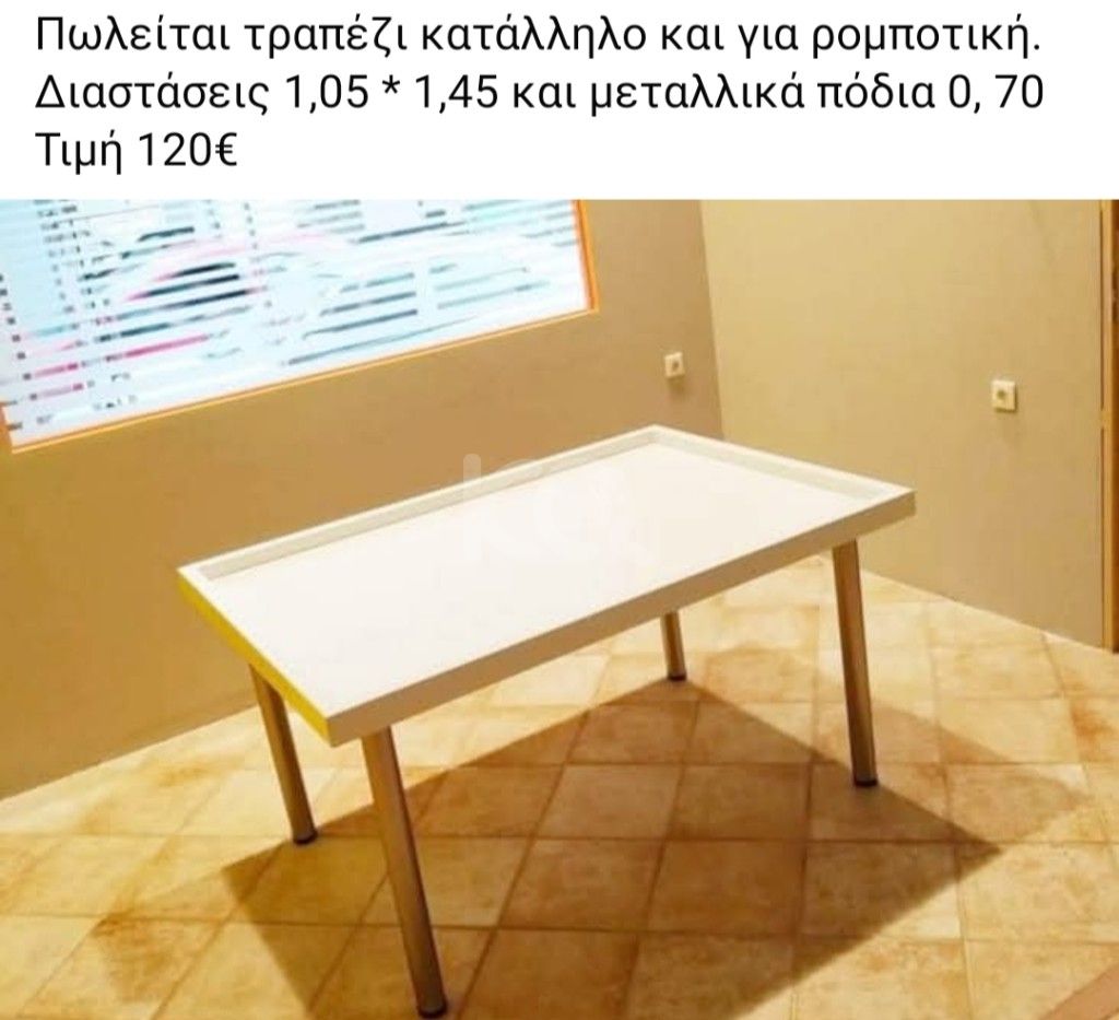 από μαραγκό αχρησιμοποίητο με μεταλλικά πόδια . 1,05*1,45 και πόδια 0,70