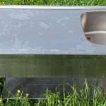 Λάντζα inox 190*70*86 με γούρνα 50*50*28. Δεν έχει τρύπα για τη βρύση και μπορεί να τοποθετηθεί είτε με τη γούρνα αριστερά είτε δεξιά