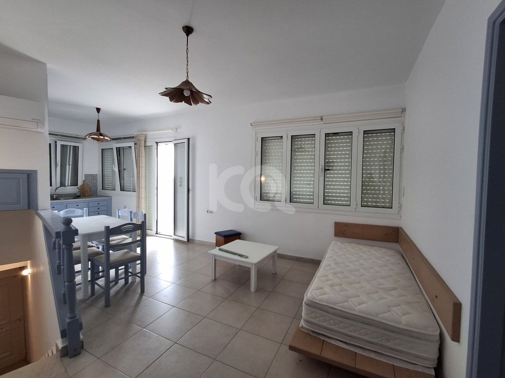 67sqm apartment, 1st floor, in Makry Gialos. It is renovated and has aluminum frames, an air conditioner, it is furnished and equipped with electrical appliances.